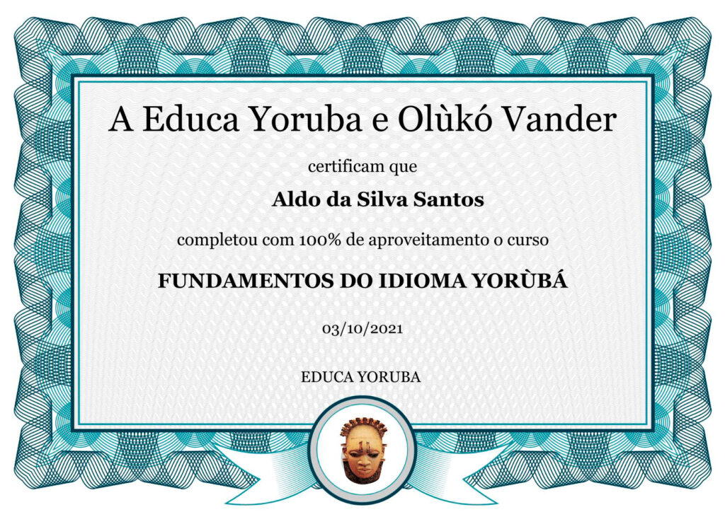 Após concluir o curso Fundamentos do Idioma Yorùbá, você terá acesso a um lindo certificado de conclusão que você poderá emitir direto da sua área do aluno, imprimir e mostrar a todos que é um conhecedor da língua sagrada.